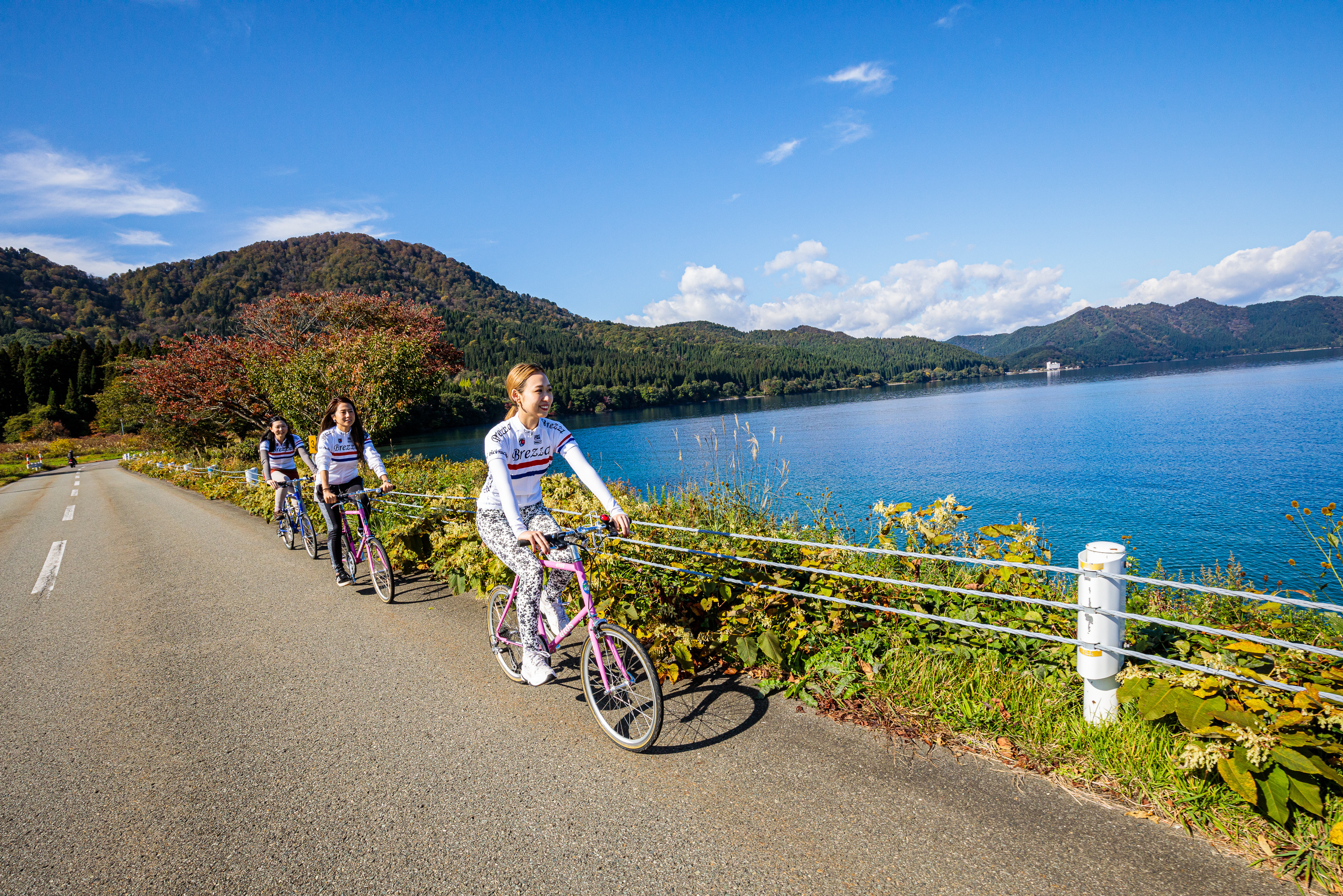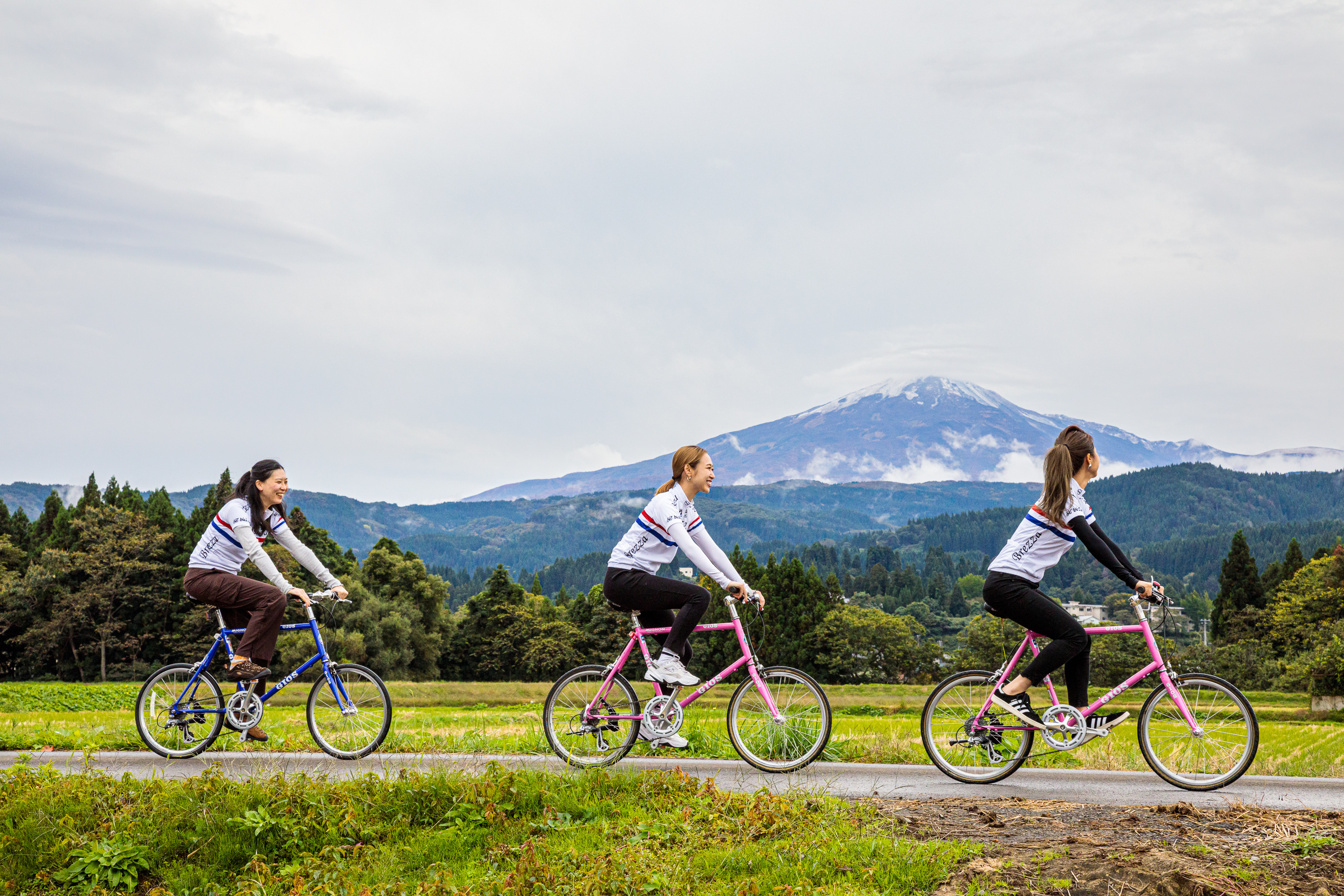 山の紅葉がみごろを迎えた10月半ば、秋田里山サイクリングを体験したのは、東京の女子三人組。