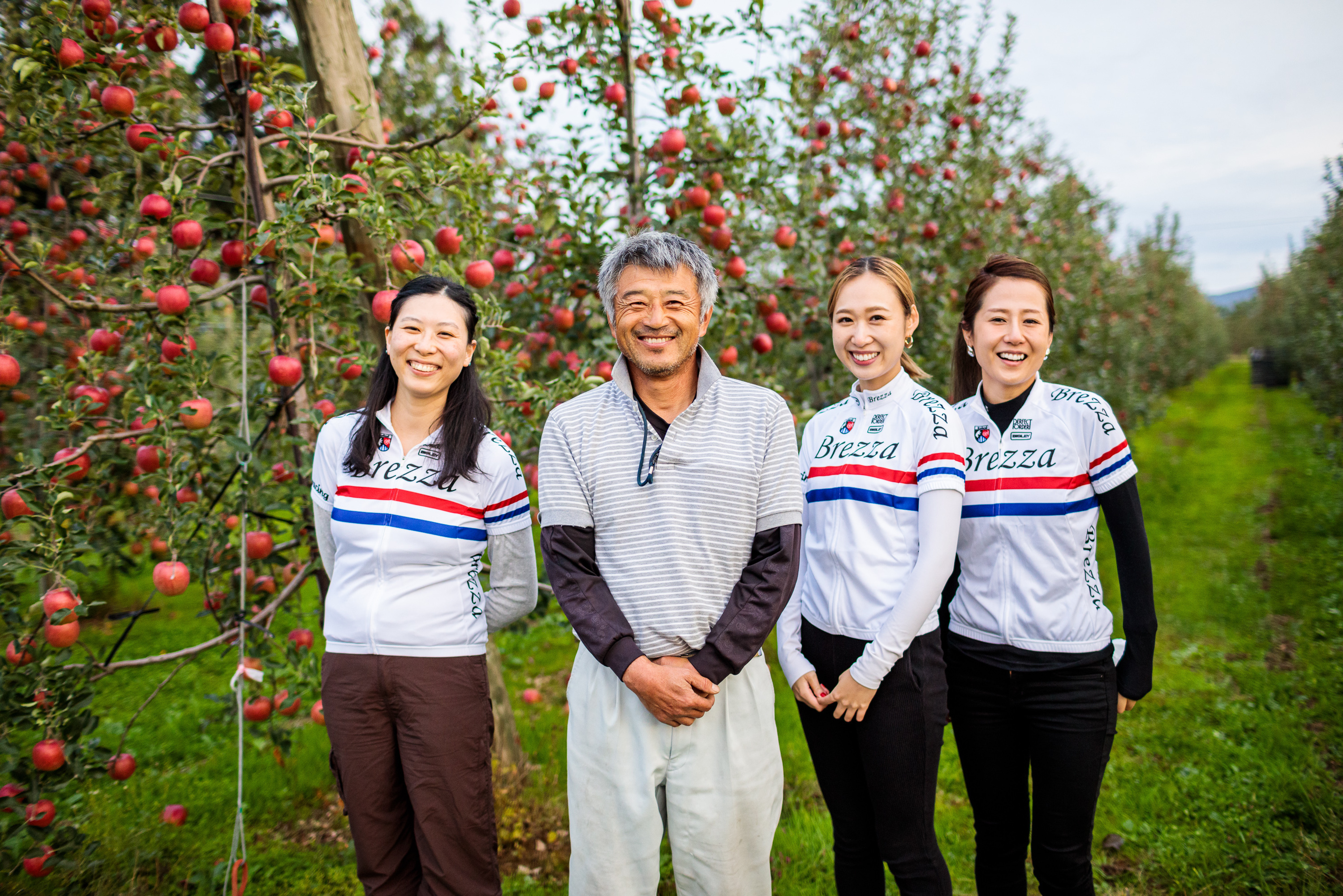 道の両側に、たわわに実った紅いりんごを見ながら自転車を走らせ、訪ねたりんご園ではシナノスイートという品種が食べごろとのこと。